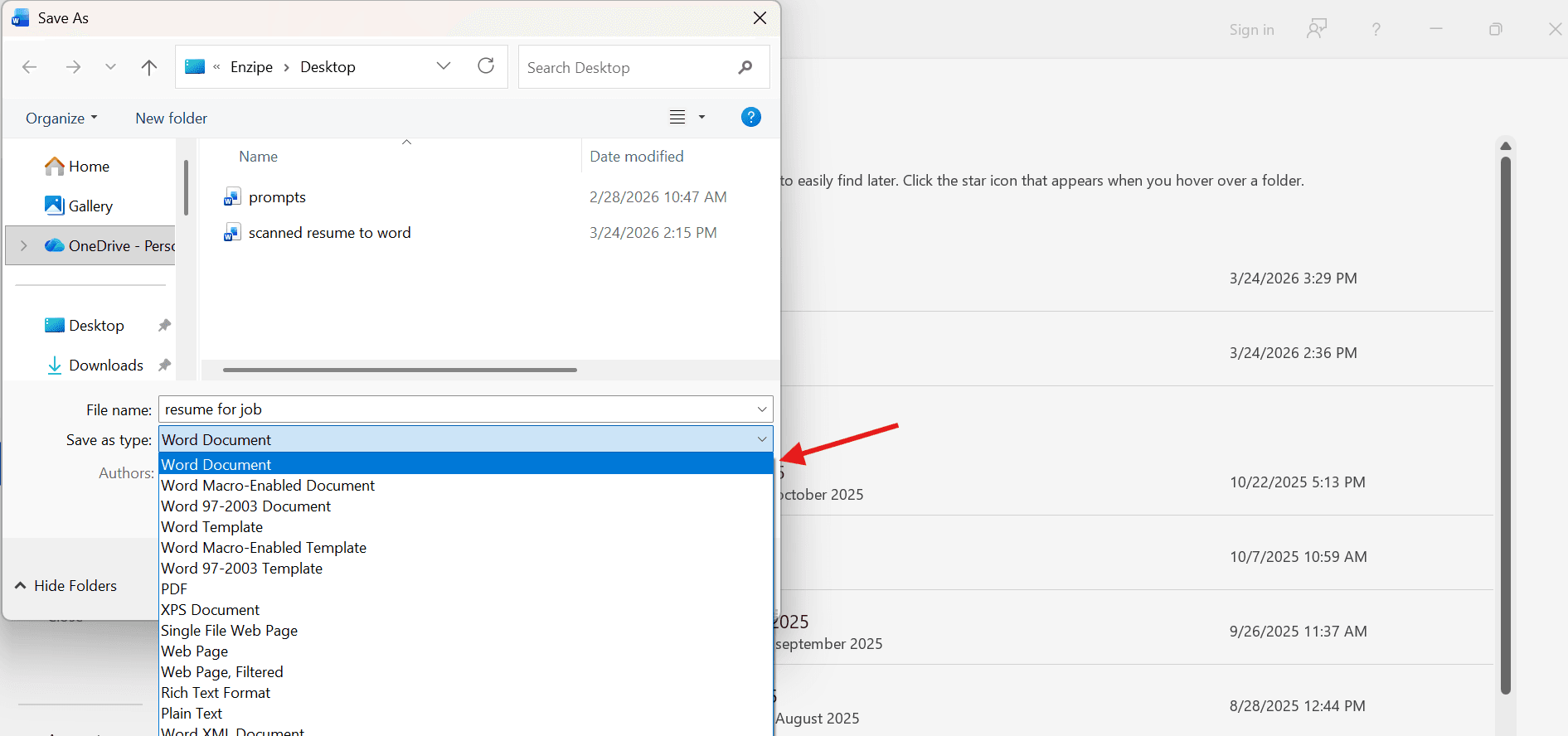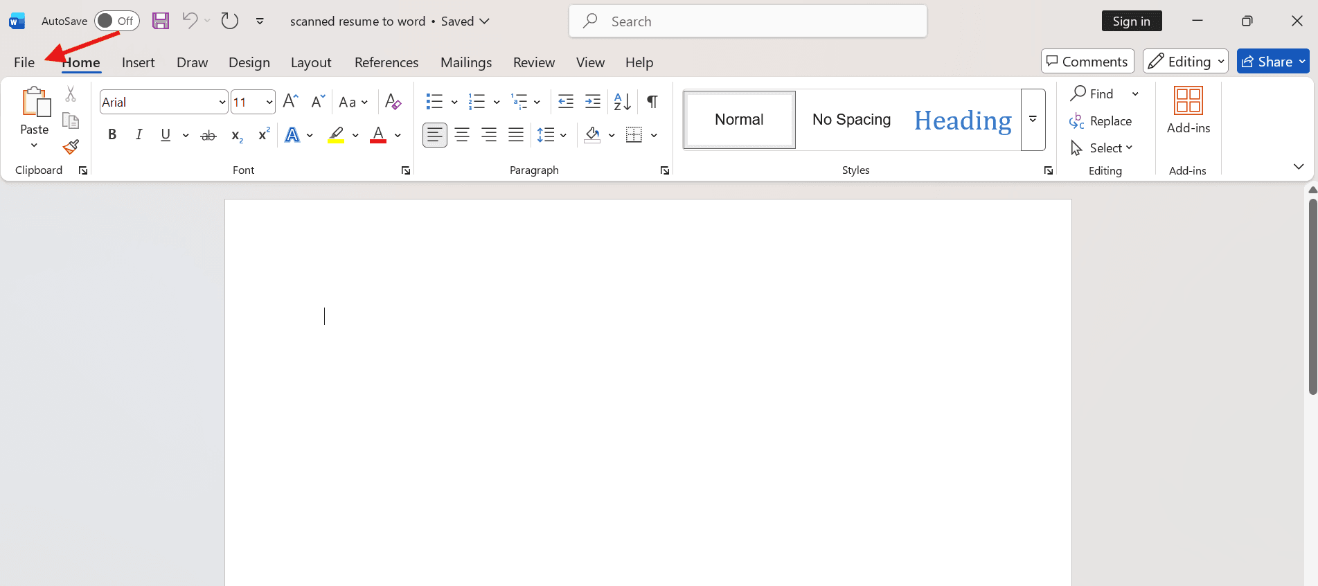 This is a built-in method in Microsoft Word. If your scanned resume is saved as a PDF, Word can often open it. But the result may depend on the quality of the scanned image.