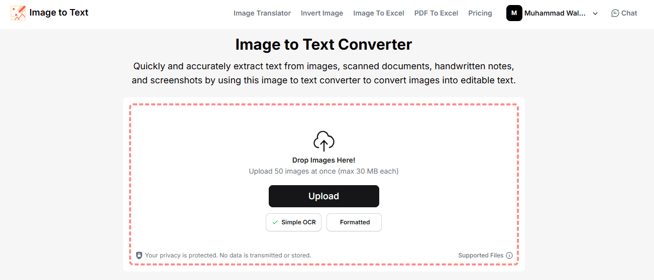 This method is free and quick, and uses an OCR-powered image to text tool to convert scanned resumes into an editable Word file. The tool accepts multiple file types, including PDF, JPEG, PNG, BMP, and more. Let’s discuss how to use such an OCR converter. For demonstration, I’m using one that I found quick and accurate during my testing.