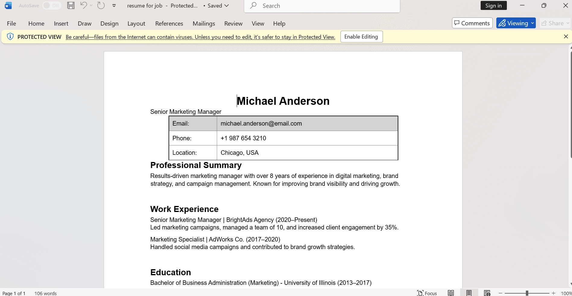 Proofread the document for any issues related to spacing or formatting. You can click on the “Enable Editing” button and edit them.