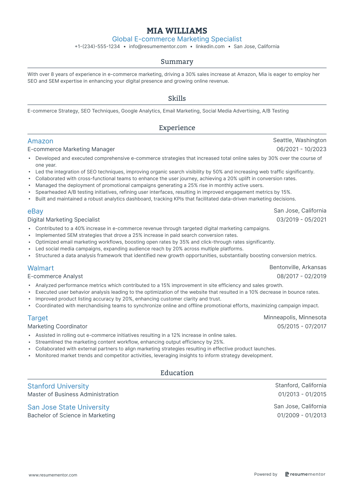 A global marketing-focused resume experience section should start with a compelling summary that captures an employer’s attention right away. This short and impactful section at the top of your resume highlights your achievements and expertise. If you're an experienced global marketing professional, this is your chance to showcase the years you've dedicated to driving successful campaigns. Emphasize your skills and notable achievements that closely align with the job you're interested in. For instance: