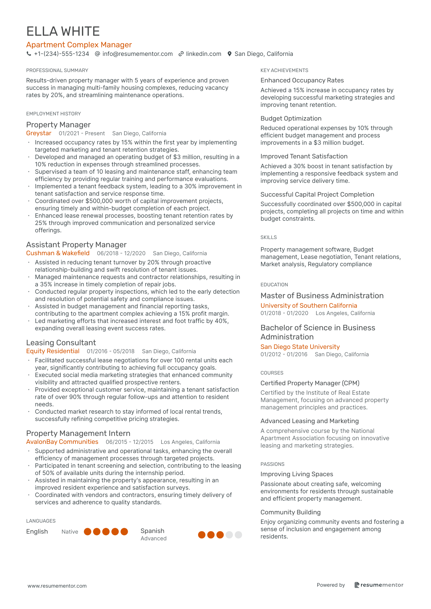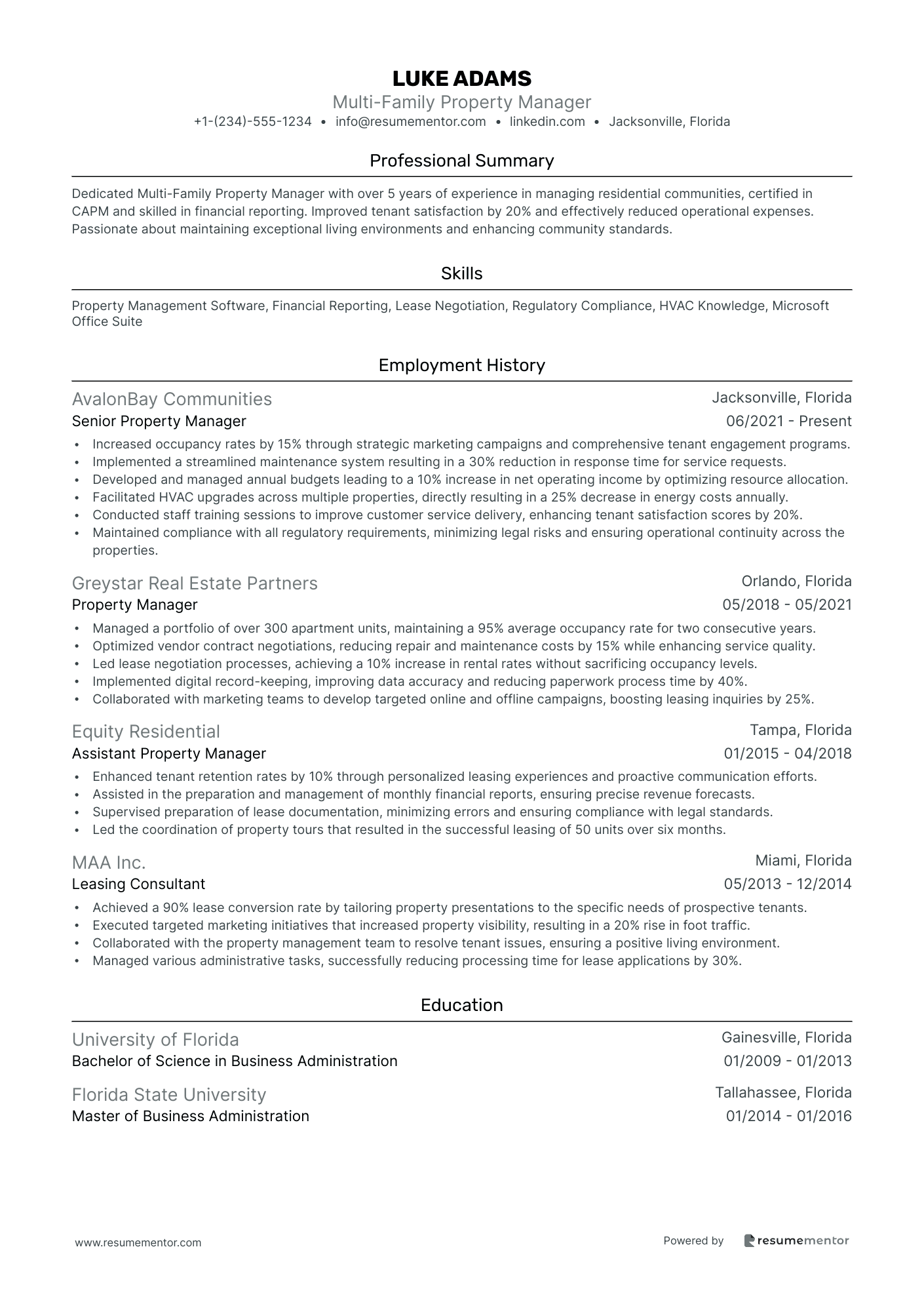 Showcase experiences that highlight your contributions to a property’s growth, such as increasing tenant retention or expanding property portfolios.