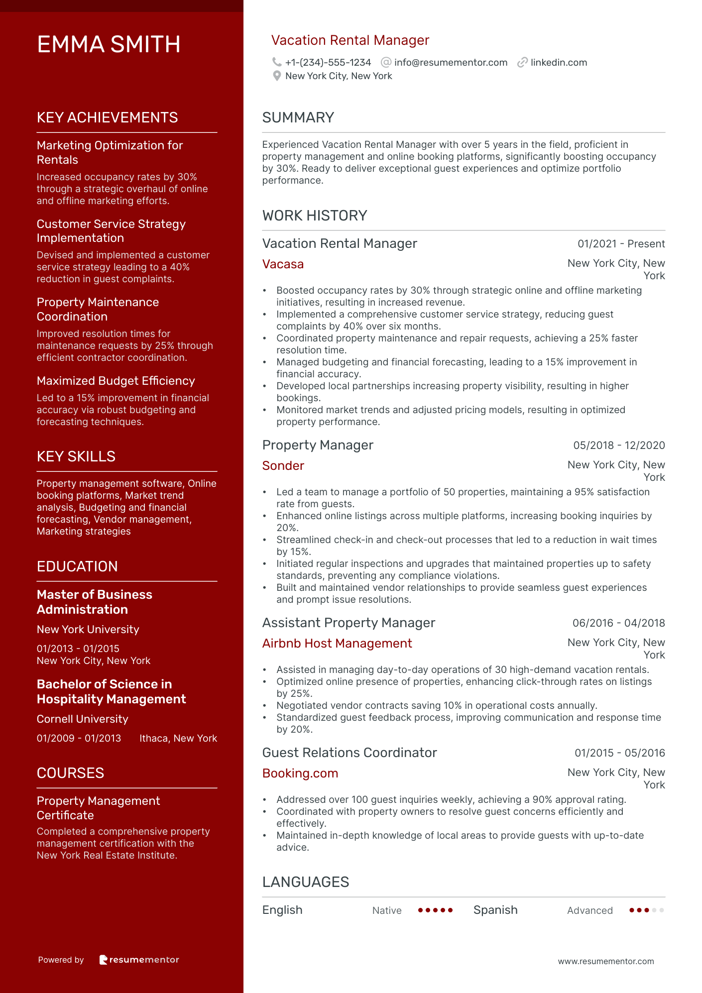 Why is this example good? It is detailed and highlights achievements with numbers. It talks about how you improved the occupancy rate, saved costs, and enhanced tenant satisfaction—showing an employer what value you bring.